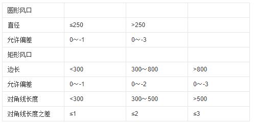3.風(fēng)口允許偏差值應(yīng)符合表2規(guī)定。
