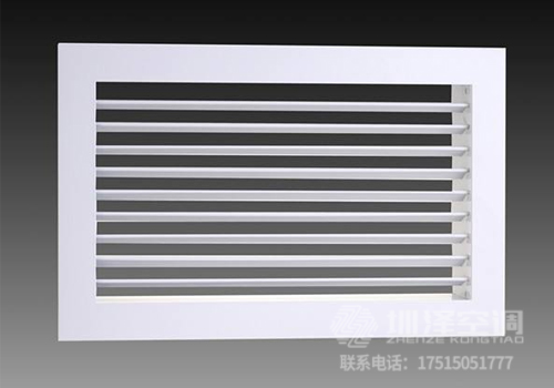 通常安裝在管道或側(cè)壁上,作為側(cè)供氣出口。雙層百葉風(fēng)口有兩層可調(diào)角度的活動葉片,短葉片用于調(diào)節(jié)送風(fēng)氣流的擴(kuò)散角度,也用于改變氣流的方向。但是,調(diào)節(jié)長葉片會使送風(fēng)氣流附著在天花板上或以一定角度向下傾斜(當(dāng)送風(fēng)時)。雙層百葉風(fēng)口的外刀片或單層百葉風(fēng)口的刀片可以平行于長邊或短邊,可以根據(jù)客戶的要求選擇。