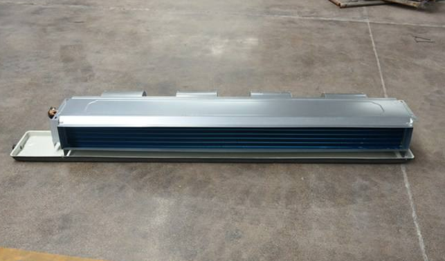 臥式暗裝風(fēng)機(jī)盤管,我們一般看不到。他們大多是隱藏在吊頂里面,我們看到的只是一個(gè)出風(fēng)口,實(shí)際在出風(fēng)口的后面隱藏著的就是風(fēng)機(jī)盤管,它是通過冷水或者熱水在里面循環(huán),后面有一個(gè)風(fēng)機(jī)往前吹風(fēng)。當(dāng)風(fēng)經(jīng)過風(fēng)機(jī)盤管的表冷器時(shí),空氣會(huì)與里面的表冷器進(jìn)行一個(gè)換熱。這樣就可以把能量或者熱量送到我們室內(nèi),帶給我們一個(gè)舒適的環(huán)境。還有一個(gè)回風(fēng)口在回風(fēng)口的旁邊,一般情況下會(huì)有一個(gè)檢修口,他是當(dāng)風(fēng)機(jī)盤管發(fā)生故障時(shí),可以通過檢測檢修口。進(jìn)去進(jìn)行維修。或者是拆裝風(fēng)機(jī)盤管。