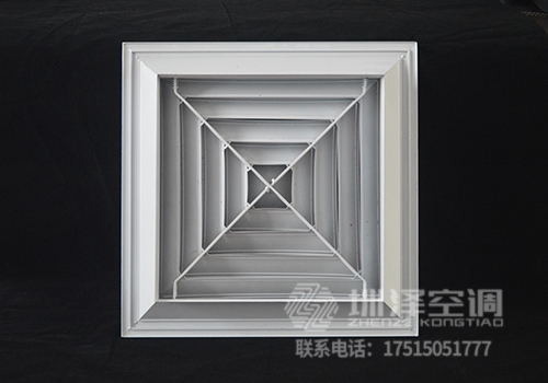 方形散流器先調(diào)挺直,表面光潔,葉片角度為固定式,葉片采用夾角片沖壓連接,整個葉片與邊框采用分離式結(jié)構(gòu),以方便安裝與調(diào)節(jié)。設(shè)計時可根據(jù)房間造型不同,選用不同出風(fēng)方向的散流器,可與調(diào)節(jié)閥配套使用。方形散流器有四種氣流吹出形式,分別為一面吹(A1SO)、二面吹(A2SO)、三面吹(A3SO)、四面吹(A4SO)。鋁合金表面經(jīng)陽極氧化處理,也可根據(jù)用戶要求進行靜電噴塑處理。