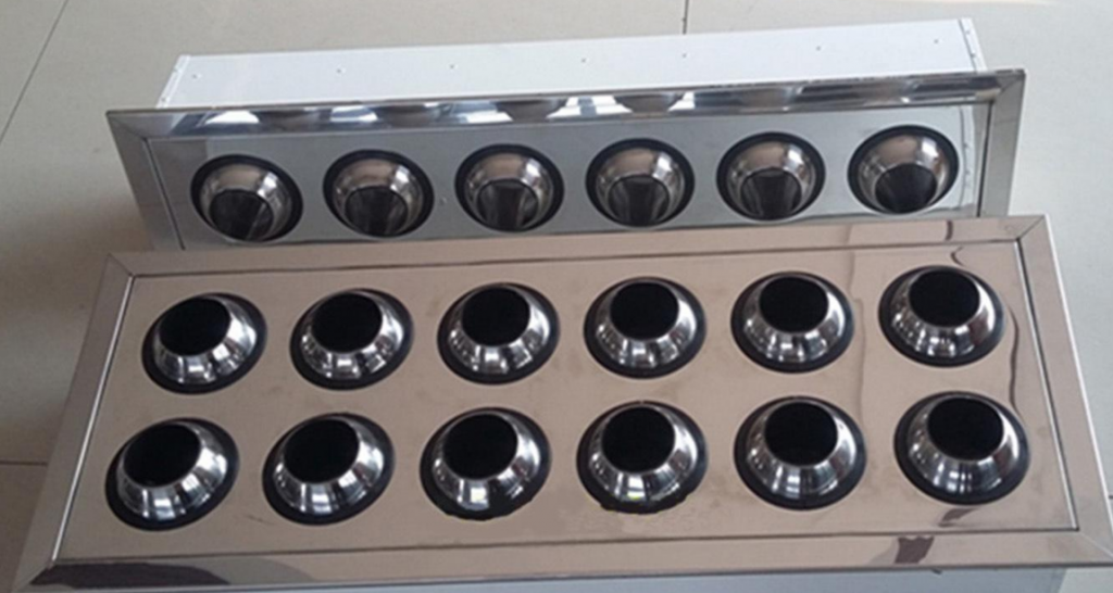 根據(jù)所使用的射流部件的不同類型,有以下四種形式:模數(shù)轉(zhuǎn)換器型圓形消聲風(fēng)口,主要布置在工業(yè)和公共建筑的大跨度、高空調(diào)空間的頂部,在墻壁的上側(cè)垂直向下或橫向送風(fēng)。ASC型圓形擴散消聲器風(fēng)口,由具有擴散角的射流部件組裝而成,形狀與模數(shù)轉(zhuǎn)換器消聲器風(fēng)口相同,其范圍由擴散角控制,可用作自上而下的供氣?;谀?shù)轉(zhuǎn)換器型圓形消音風(fēng)口的旋轉(zhuǎn)式圓形消音風(fēng)口,用可旋轉(zhuǎn)的ω形射流部件代替了原來的大尺寸射流部件。用戶可以根據(jù)自己的需要旋轉(zhuǎn)射流部件的出氣口方向。風(fēng)口主要用于自上而下供氣。加法式旋轉(zhuǎn)射流圓形消音風(fēng)口。風(fēng)口采用AD型射流組件形成送風(fēng)旋轉(zhuǎn)體。旋轉(zhuǎn)體以氣流本身為動力,以1-3R/min的速度旋轉(zhuǎn),使送出的氣流具有“動態(tài)性”和均勻性。風(fēng)口用于自上而下的供氣。