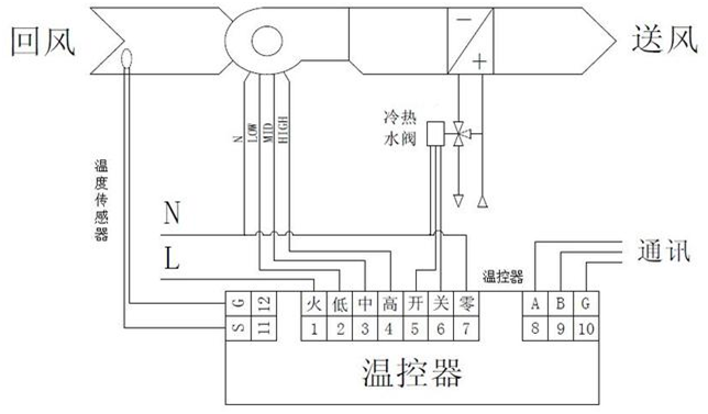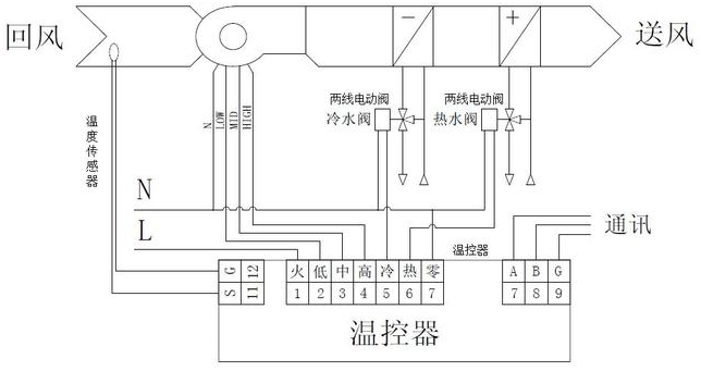 雙管冷熱組合系統(tǒng)由溫度控制器、風(fēng)機(jī)盤管和電動(dòng)閥組成。。根據(jù)不同的應(yīng)用系統(tǒng),電動(dòng)閥有雙通閥和三通閥。。當(dāng)系統(tǒng)中未設(shè)置旁路時(shí),選擇雙通閥;當(dāng)系統(tǒng)設(shè)置有旁路時(shí),應(yīng)用三通,冷水/熱水在正常制冷或供熱過程中通過盤管回流,冷水/熱水通過旁路回流,并且當(dāng)不需要制冷或供熱時(shí),不流經(jīng)盤管系統(tǒng)。電動(dòng)閥根據(jù)不同的控制原理分為二線閥和三線閥。