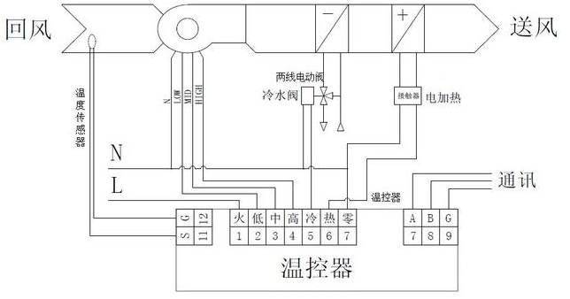 電加熱雙管系統(tǒng)由溫控器、風(fēng)機(jī)盤管、電動(dòng)閥、電加熱器和接觸器等組成。